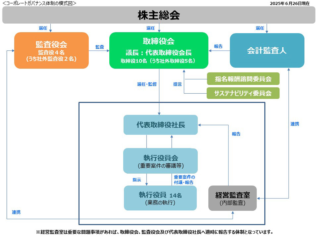 <コーポレートガバナンス体制の様式図>2025年6月26日現在