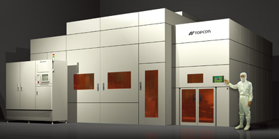 世界初の第6世代超大型ガラス基板対応液晶露光装置。(1500×1800mmの大面積を分割して露光するステップ方式採用)