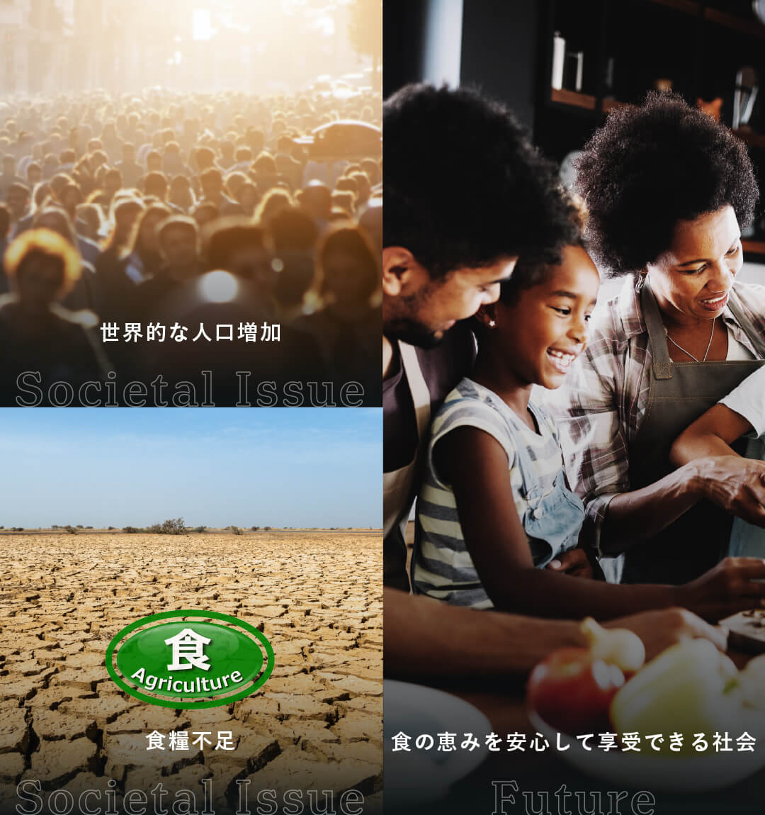 世界的な人口増加、近年の気候変動により、世界規模の食糧不足が懸念されています。また、先進国では農業従事者の減少・高齢化が社会問題となっています。