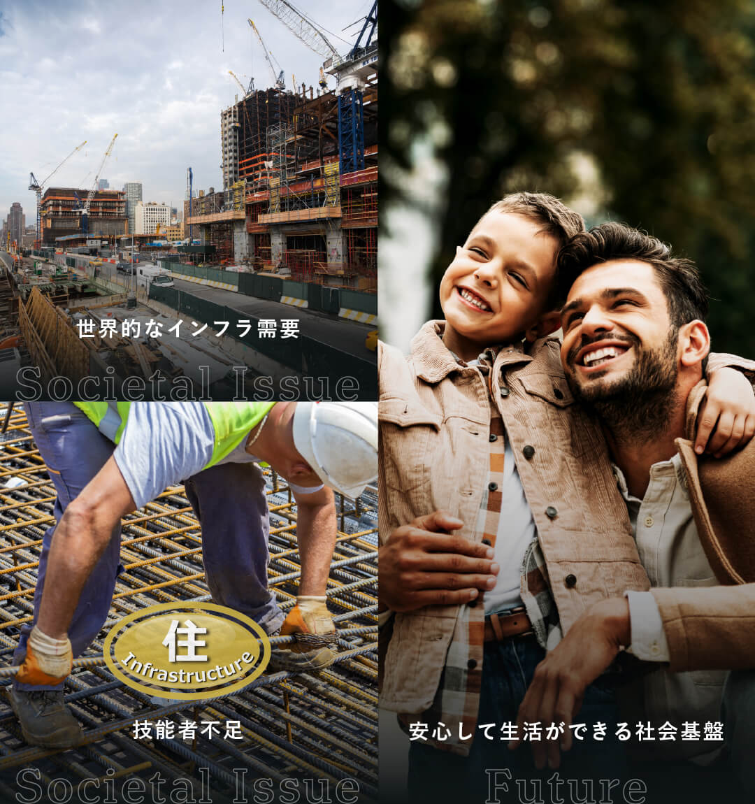 「住(Infrastructure)」では、世界的なインフラ需要に伴う技能者不足に対処すべく「建設工事の工場化」により、