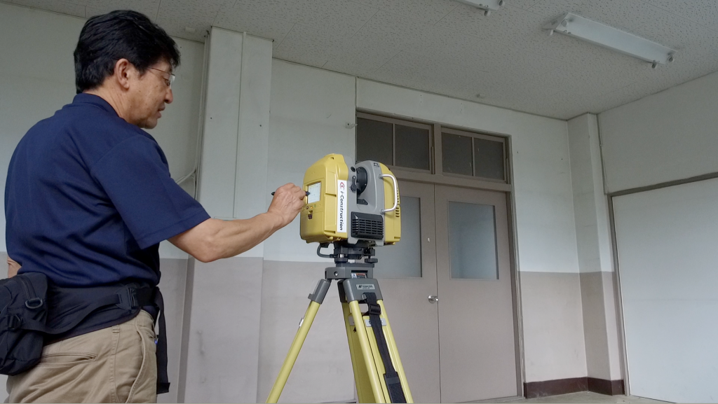 学生は、日本の歴史的建造物を3Dモデル化し、BIMやVRの技術を活用することで保存・再生方法を確立する研究をしていました。そこで「板橋区史跡公園」を研究対象として、地形や建物をスキャンして3次元データ化する3次元測量を行おうと考えました。