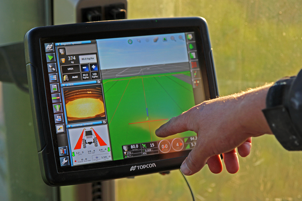 当社のレーザー式生育センサー(CropSpec)で測定したデータをもとに、肥料の最適な散布量を算出し、作物の生育状況をリアルタイムで計測。この光計測技術と自動操舵で適切な量の肥料を撒くことにより、一定の収穫量を維持しつつ、肥料の散布量を最大30%、硝酸塩の浸出量を最大13%削減できることが実証されました。