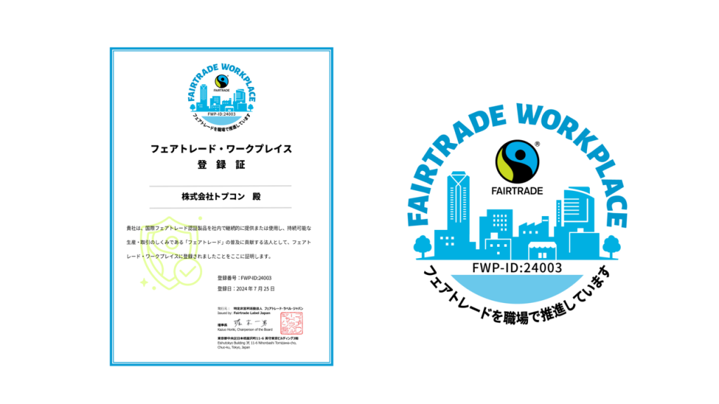 特定非営利活動法人フェアトレード・ラベル・ジャパン(FLJ)が2024年7月に開始した「フェアトレード・ワークプレイス登録制度」*1において、当社グループは、フェアトレード・ワークプレイス企業として認定・登録されました。