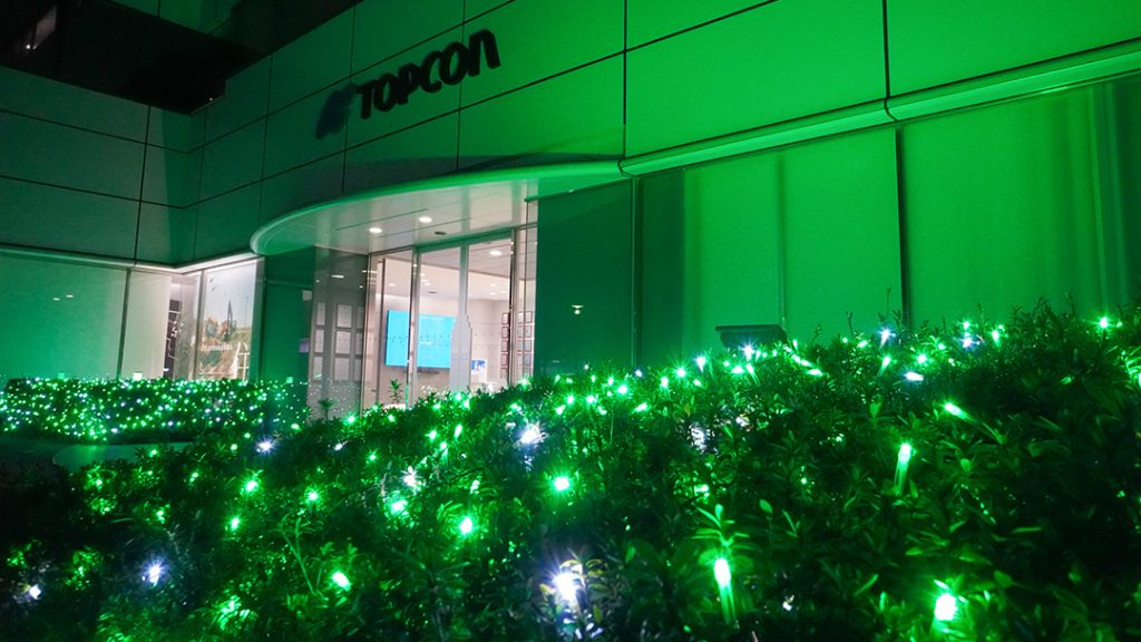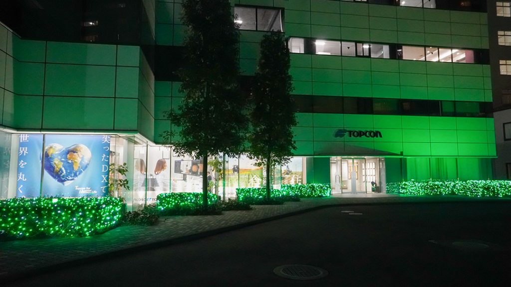 日本緑内障学会が中心となった「ライトアップ in グリーン運動」は2015年から開催されており、2024年には国内1,491ヶ所、国外12ヶ所※1で実施されました。当社は2020年よりこの活動に協賛しており、2025年は3月9日(日)から15日(土)※2まで、東京・板橋区の本社敷地内や、株式会社トプコンメディカルジャパンの札幌・仙台・横浜・名古屋・大阪・広島・松山・福岡営業所を、緑内障にちなみグリーンにライトアップします。