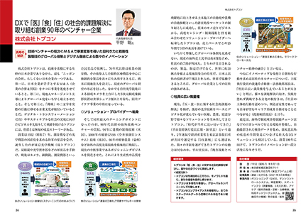 当社は本年9月に創立90周年を迎えます。”DXで「医」「食」「住」の社会的課題解決に取り組む創業90年のベンチャー企業”と題し、デジタル・トランスフォーメーション(DX)やサステナブルな社会の実現に向けビジネスを先取りして飛躍を続ける企業として紹介されました。